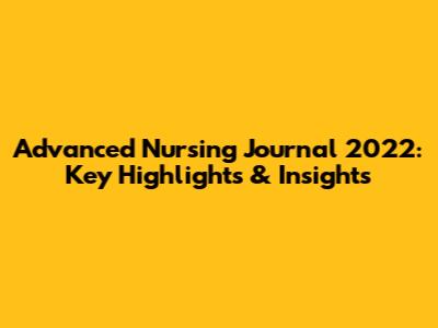 Advanced Nursing Journal 2022: Key Highlights & Insights