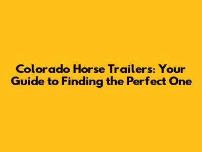 Colorado Horse Trailers: Your Guide To Finding The Perfect One