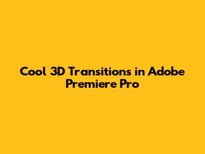 Cool 3D Transitions In Adobe Premiere Pro