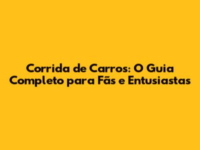Corrida De Carros: O Guia Completo Para Fãs E Entusiastas