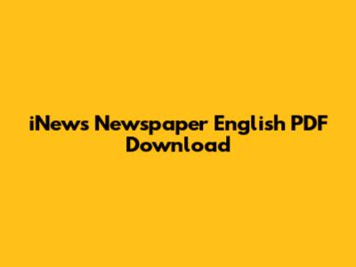 Download INews English Newspaper PDF - Latest Editions