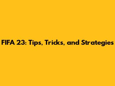 FIFA 23: Tips, Tricks, And Strategies