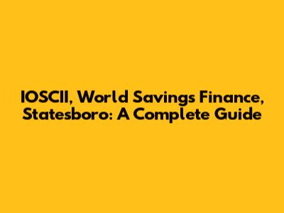 IOSCII, World Savings Finance, Statesboro: A Complete Guide