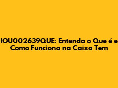 IOU002639QUE: Entenda O Que É E Como Funciona Na Caixa Tem