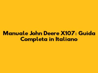 Manuale John Deere X107: Guida Completa In Italiano