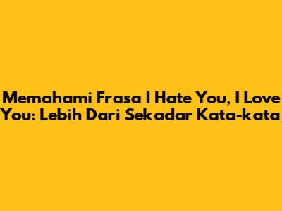 Guys, frasa 'I Hate You, I Love You' seringkali muncul dalam situasi konflik. Tapi, bagaimana cara kita mengatasinya secara sehat dan konstruktif? Yuk, simak!
