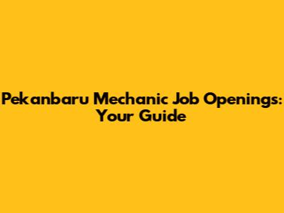 Pekanbaru Mechanic Job Openings: Your Guide