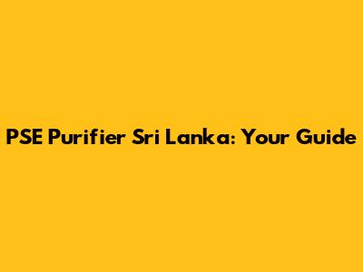 PSE Purifier Sri Lanka: Your Guide