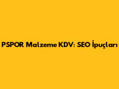 PSPOR Malzeme KDV: SEO İpuçları