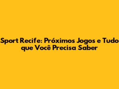 Sport Recife: Próximos Jogos E Tudo Que Você Precisa Saber