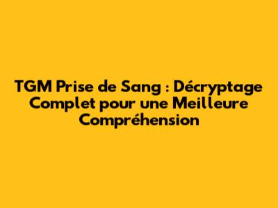 Interprétation des Résultats de la Prise de Sang TGM