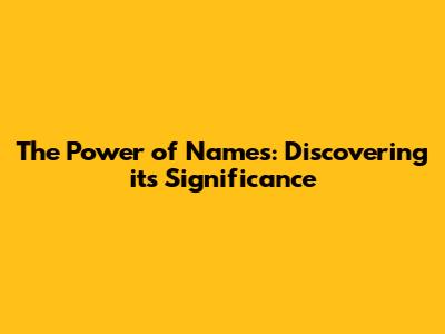 The Power Of Names: Discovering Its Significance