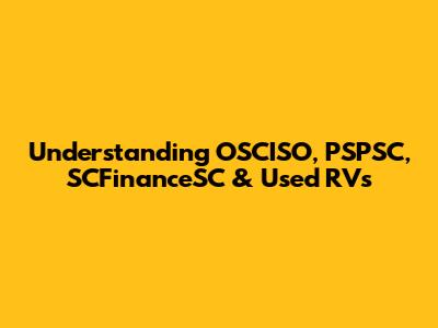 Understanding OSCISO, PSPSC, SCFinanceSC & Used RVs