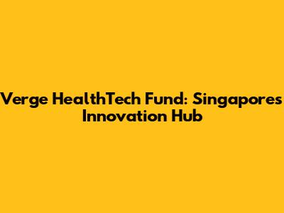 Verge HealthTech Fund: Singapore's Innovation Hub