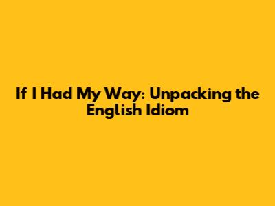 "If I Had My Way": Unpacking the English Idiom